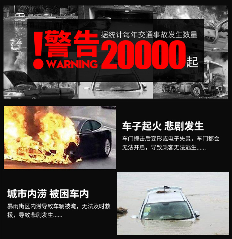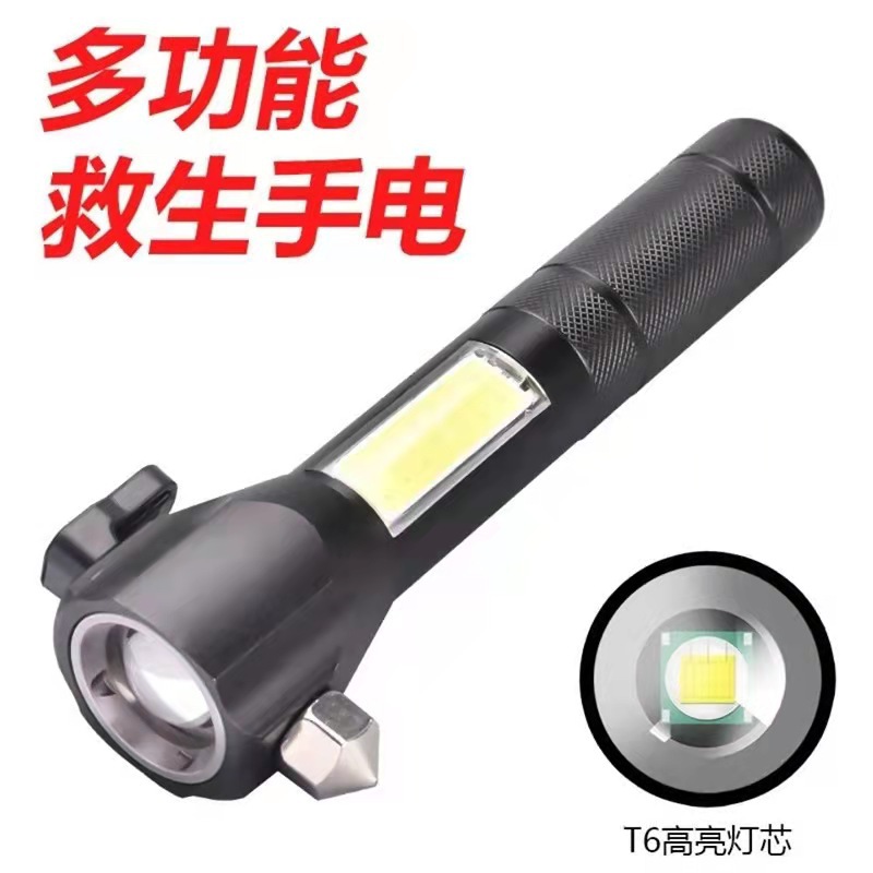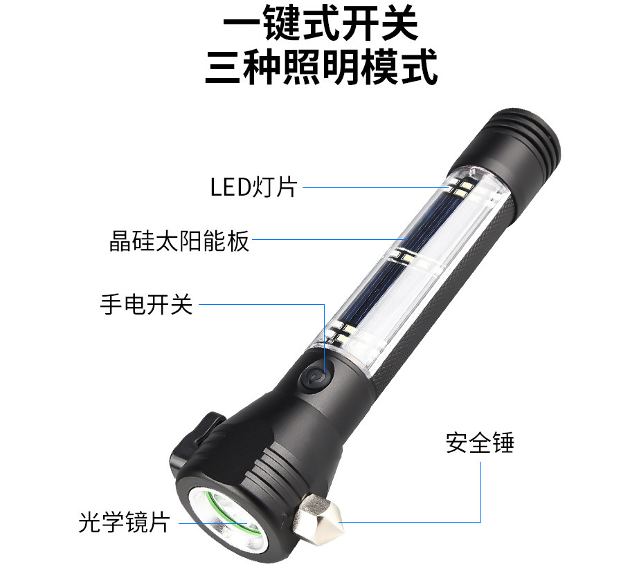 Zoom Cob Aluminum Alloy Solar Alarm, Flashlight, Led Outdoor Warning, Strong Magnetic Vehicle Emergency Compass